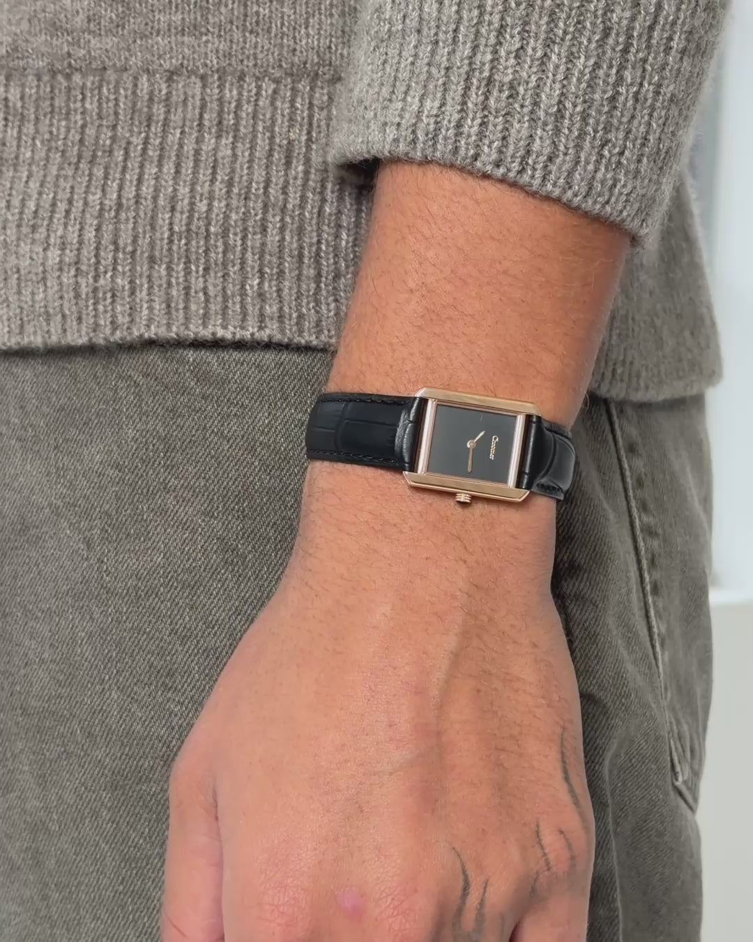 A bold square case, deep black dial, zero distractions. Minimalism with presence.