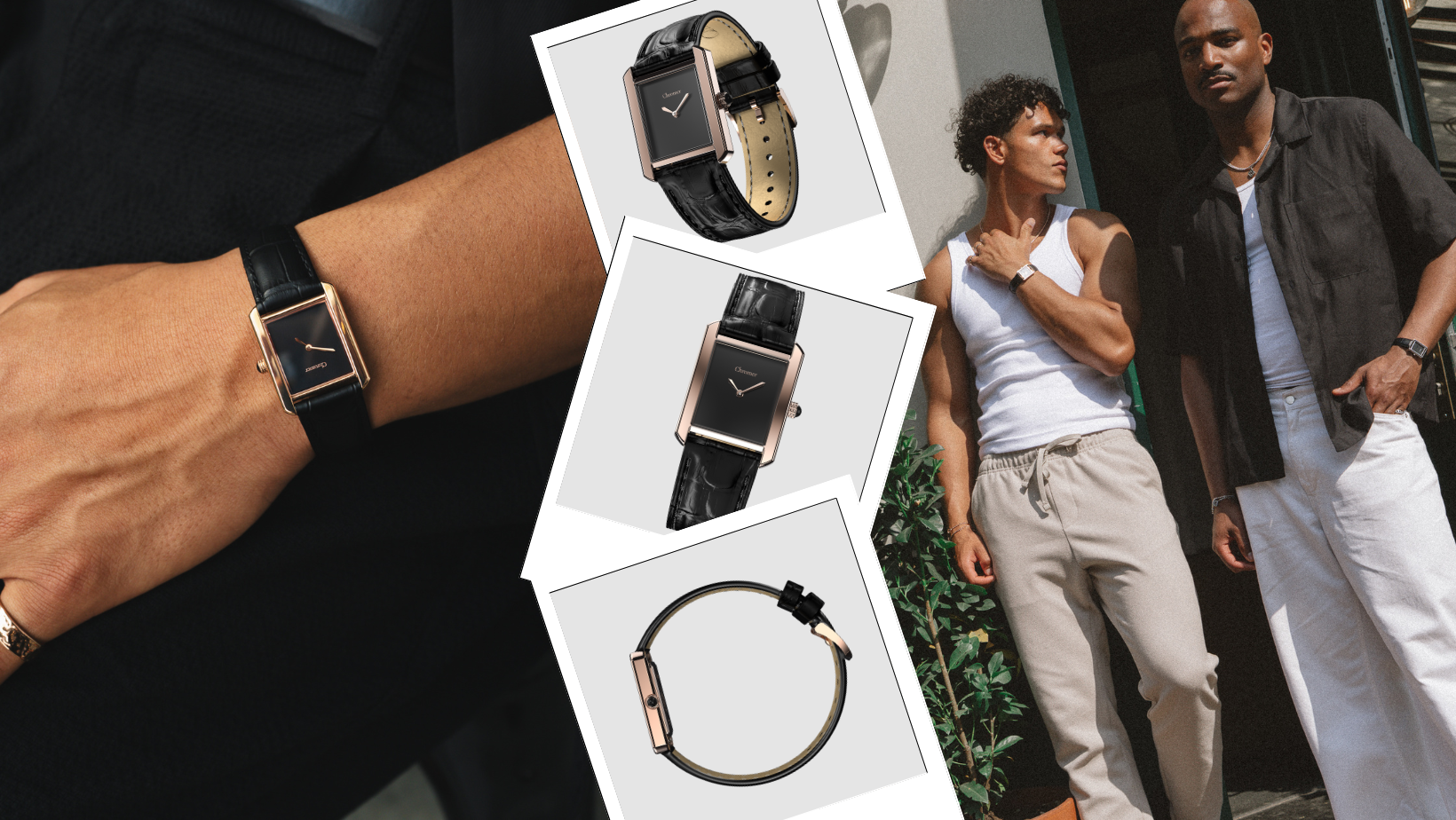 A bold square case, deep black dial, zero distractions. Minimalism with presence.